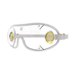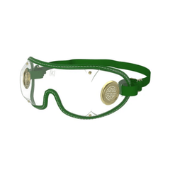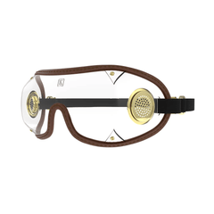Fully ventilated design with stitched edging and brass hardware for durability and fog‑reduction under a helmet.